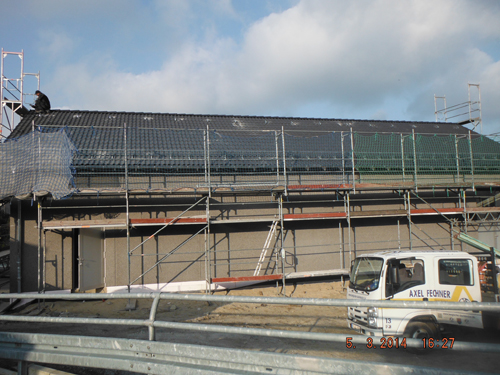 Immer wiederkehrende Reparaturen und Schneeräumarbeiten wegen defekter Vordeckbahn des alten Daches, sowie energetischen Gründen (fehlende Wärmedämmung) war eine Sanierung unumgänglich.