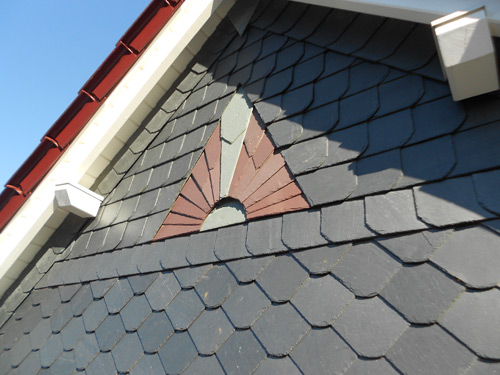 Naturschiefer 20/20 Rundbogen Wabendeckung und Waagerechtedeckung